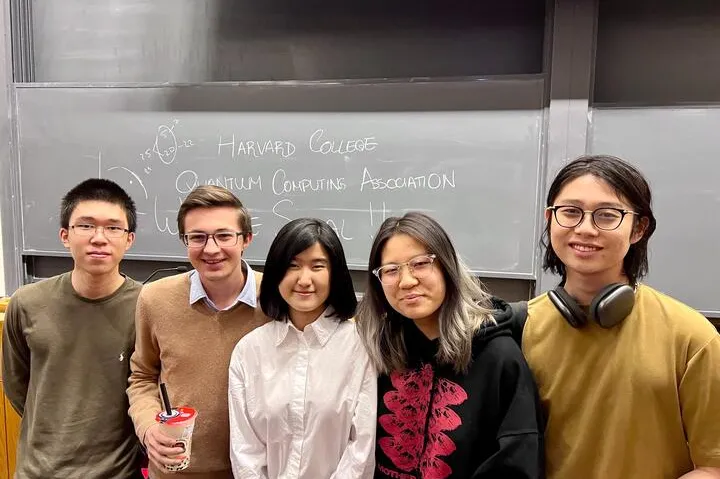 Harvard College Quantum Computing Association leaders William Hu, Ricardo Skewes, Emma Yang, Rain Wang and Felix Yeung (Emma Yang)