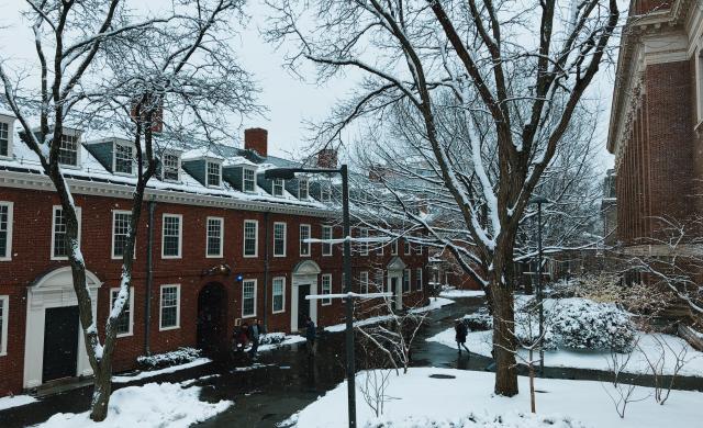 Outside the window of our dorm, small specks drifted down, dotting Harvard Yard and accumulating on gutters, rooftops, and steps. This was the first snowfall I experienced at Harvard College, and it was unexpectedly magical.